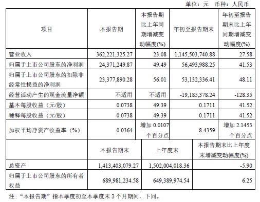 寶光股份2023年三季度主要會計數(shù)據(jù)和財務指標