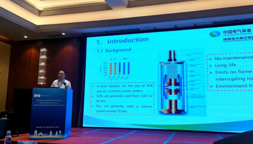 2024年11月11日至13日,第七屆電力裝備開斷技術(shù)國際會議(ICEPE-ST 2024)在廈門召開,公司黨委副書記、總經(jīng)理劉壯帶領(lǐng)技術(shù)和市場團(tuán)隊(duì)參加會議,并進(jìn)行技術(shù)交流和產(chǎn)品宣講,向?qū)W術(shù)界同仁展現(xiàn)了公司技術(shù)研究和產(chǎn)品開發(fā)方面的最新成果。